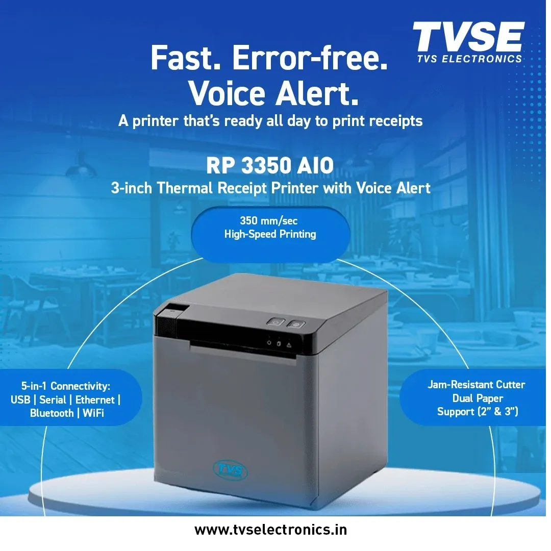 #TVSElectronics #TVSE #ThermalPrinterNearYou #ThermalPrinter #RP3350 #ReceiptPrinter #RetailTech #FastPrinting #VoicePrompt #POSPrinter #BusinessEfficiency #RetailSolutions #HospitalityTech #SmartPOS